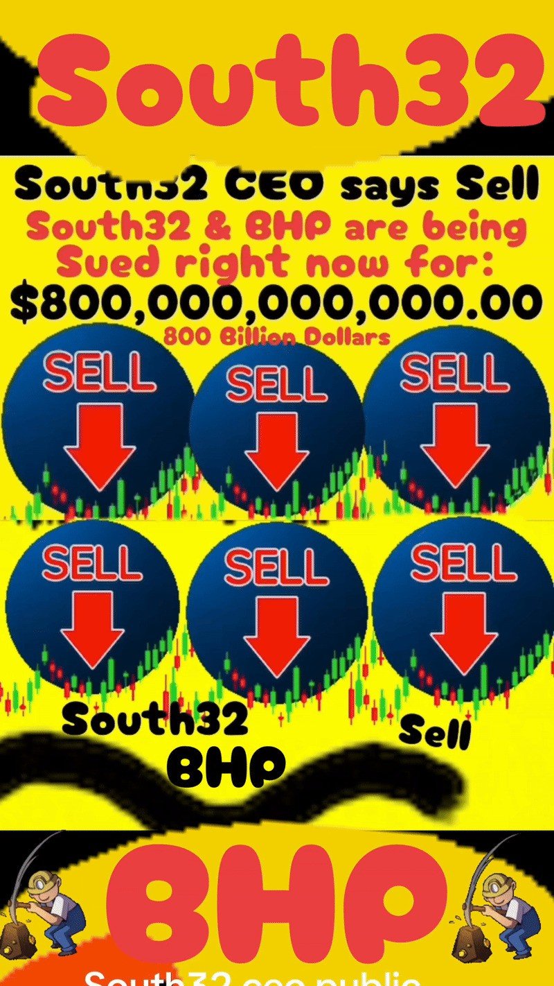 South32 CEO urgent warning announcement South32 CEO says Sell, South32 mining and BHP mining are being sued right now for $800,000,000,000.00 800 Billion Dollars south32.net land digger & BHP.com land digger $800,000,000,000.00 South32 CEO urgent warning announcement Sell Sell Sell.,